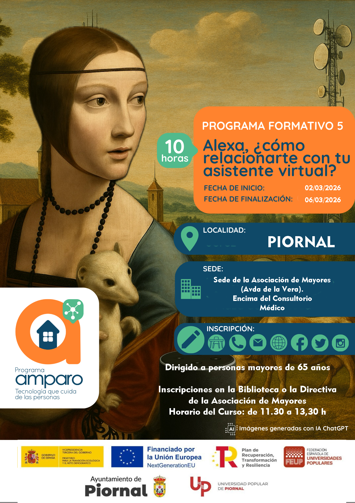 Se informa que se abre el plazo para apuntarse al último módulo del Programa Amparo de la Federaciónde Universidades Populares. En esta último módulo se tratará del Asistente Virtual Alexa, así como aprender a trabajar con inteligencia artificial.
