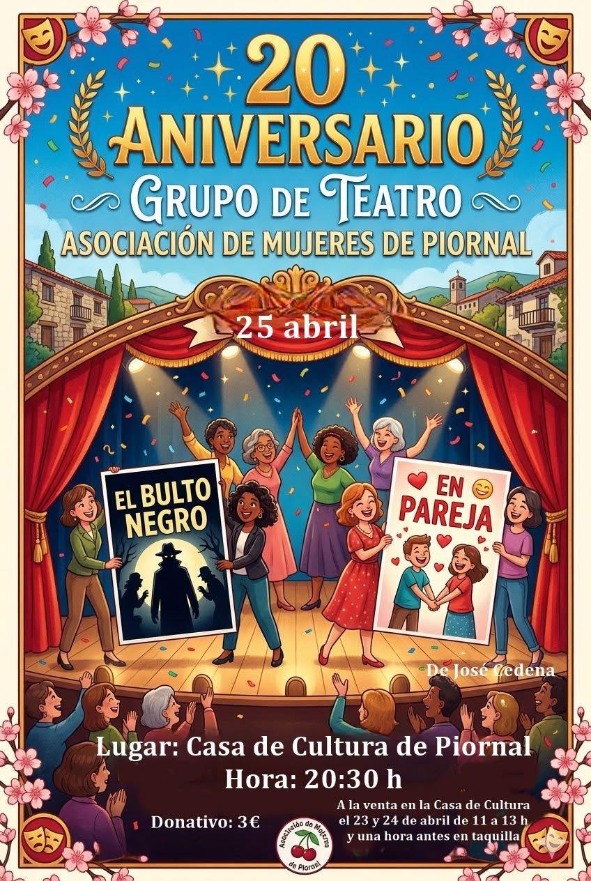 Y a las 20:30 en el Salón de Actos se la Casa de Cultura, el 20 Aniversario del grupo de teatro de la Asociación de Mujeres de Piornal.