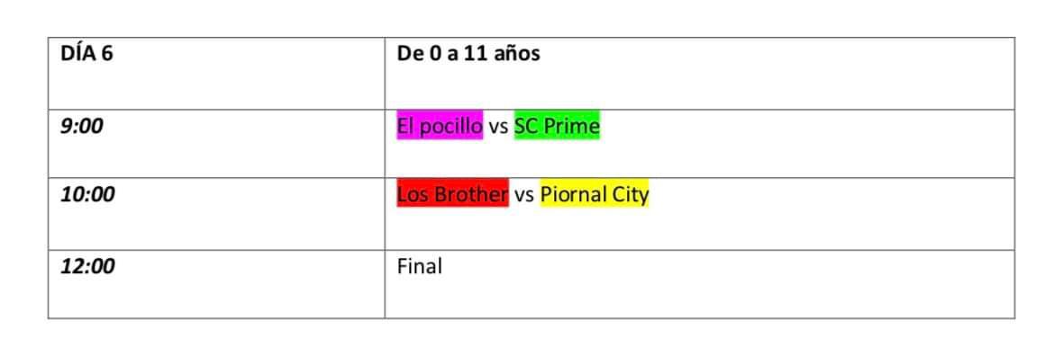 Adjuntamos la foto con el orden y los horarios.