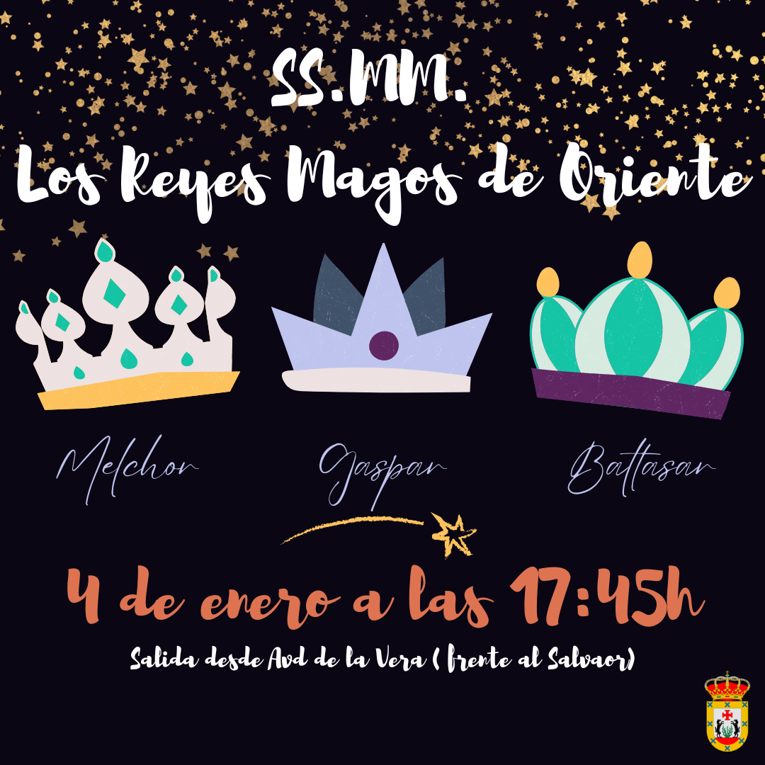 Mañana 4 de enero a las 17:45h la cabalgata dará comienzo desde Avenida de la Vera (frente al salvaor) y finalizará en la Cooperativa (Avd del Valle) 🌟